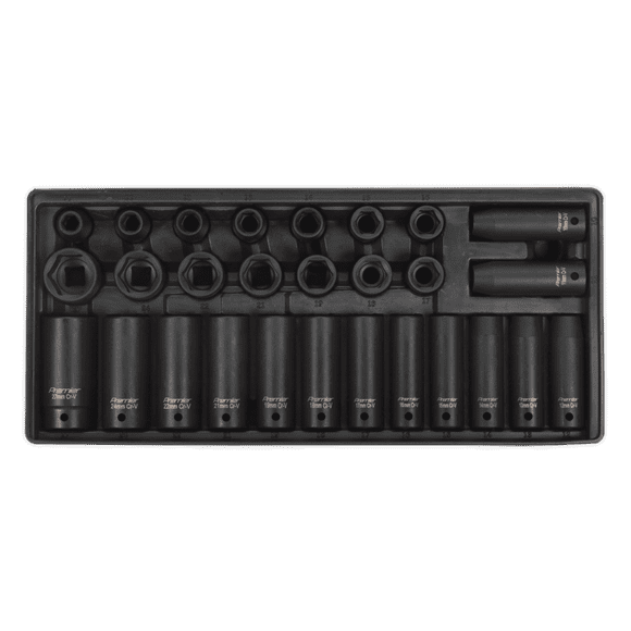 SEALEY PREMIER 28PC 1/2"SQ DRIVE IMPACT SOCKET SET WITH TOOL TRAY - METRIC